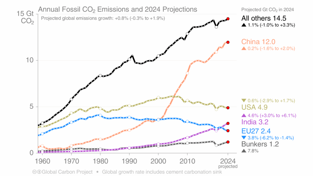 The problem then is this. Environmental activists believe they have a moral duty to break laws and the conventional moral values and principles of democratic citizenship in order to coerce their governments into taking effective actions to save humanity from the existential danger of climate change. But none of the actions they are demanding their governments do would actually be effective in achieving this goal. This is because they are focused on accelerating greenhouse gas reductions by a handful of countries that make up a fast declining share of emissions. Climate change mitigation is a global problem that cannot be solved by one or a few rich democracies. (Actually it cannot be ‘solved’ at all, only better or worse managed – see further.)